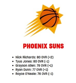 1月31日訊 NBA2K本周更新,太陽隊內球員的能力值有所變化,新援理查茲由78上漲至80。泰厄斯-瓊斯由81降至80,格雷森-阿倫由78升至79,瑞安-鄧恩由76升至77,羅伊斯-奧尼爾由77將至76。 標簽: 籃球 NBA 太陽
