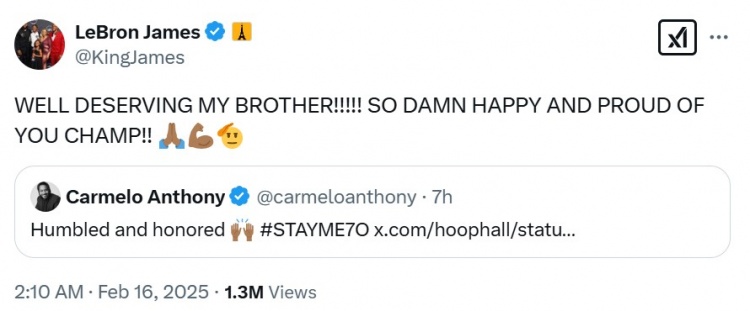 勒布朗-詹姆斯轉(zhuǎn)發(fā)評(píng)論道:“我的兄弟實(shí)至名歸?。。。。∥襎MD太為你這位冠軍感到高興和驕傲了?????????????????????。 ?/p>