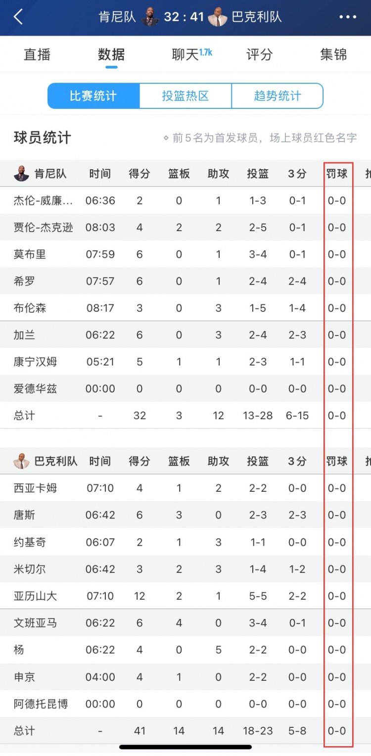 突出一個流暢!巴克利隊41-32勝肯尼隊 兩隊全場一個罰球都沒有~