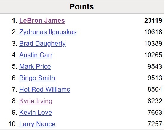 (注:詹姆斯在熱火得分排名第五、上圖錯(cuò)誤)