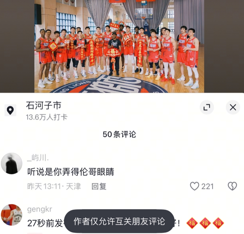 評論區(qū)另一個熱評則是小將袁照耀,目前已經(jīng)很多點贊,但郭艾倫沒有回復。值得一提的是,袁的社媒開啟了防打擾,但郭艾倫最新的抖音發(fā)布之后又開啟了。