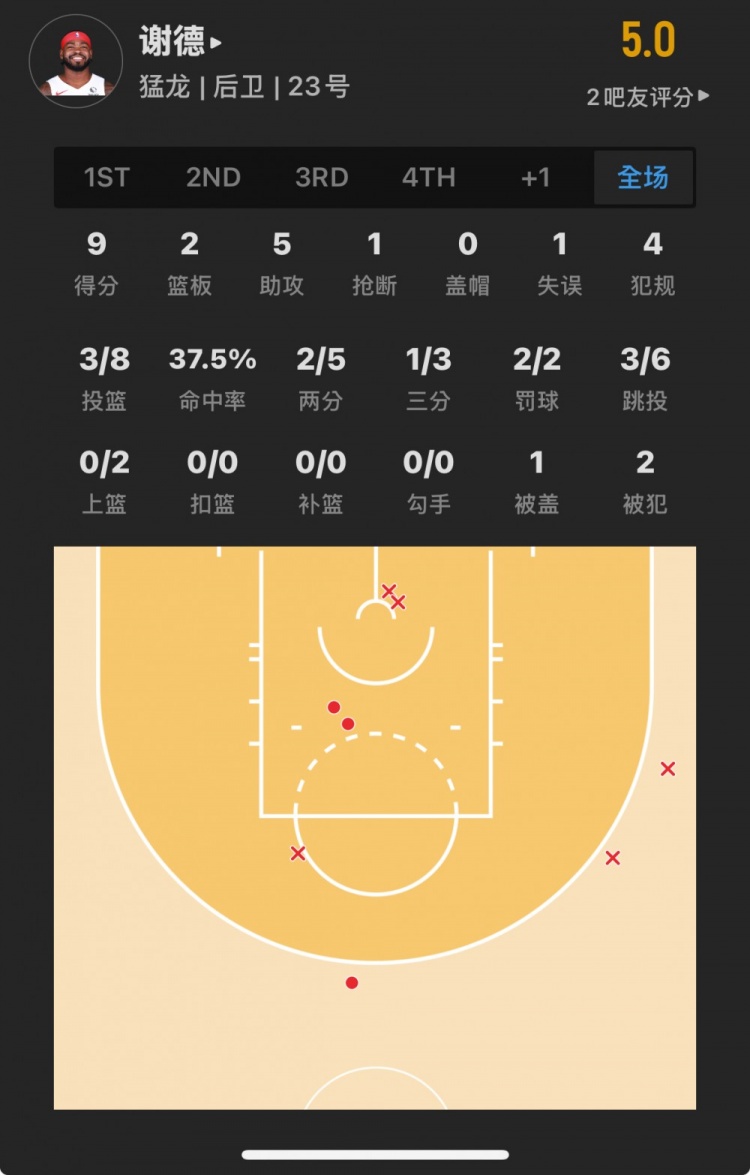 猛龍45號秀 賈馬爾-謝德 登場17.7分鐘