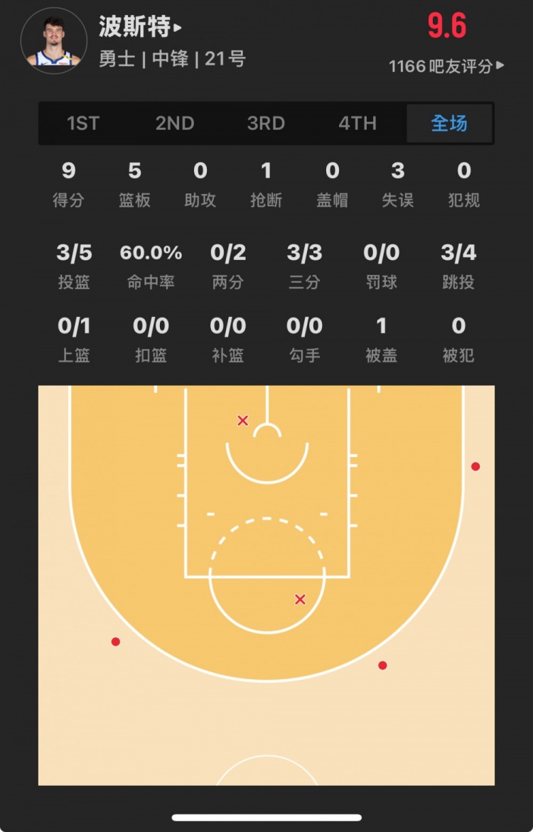 勇士52號秀 昆滕-波斯特 登場13.7分鐘