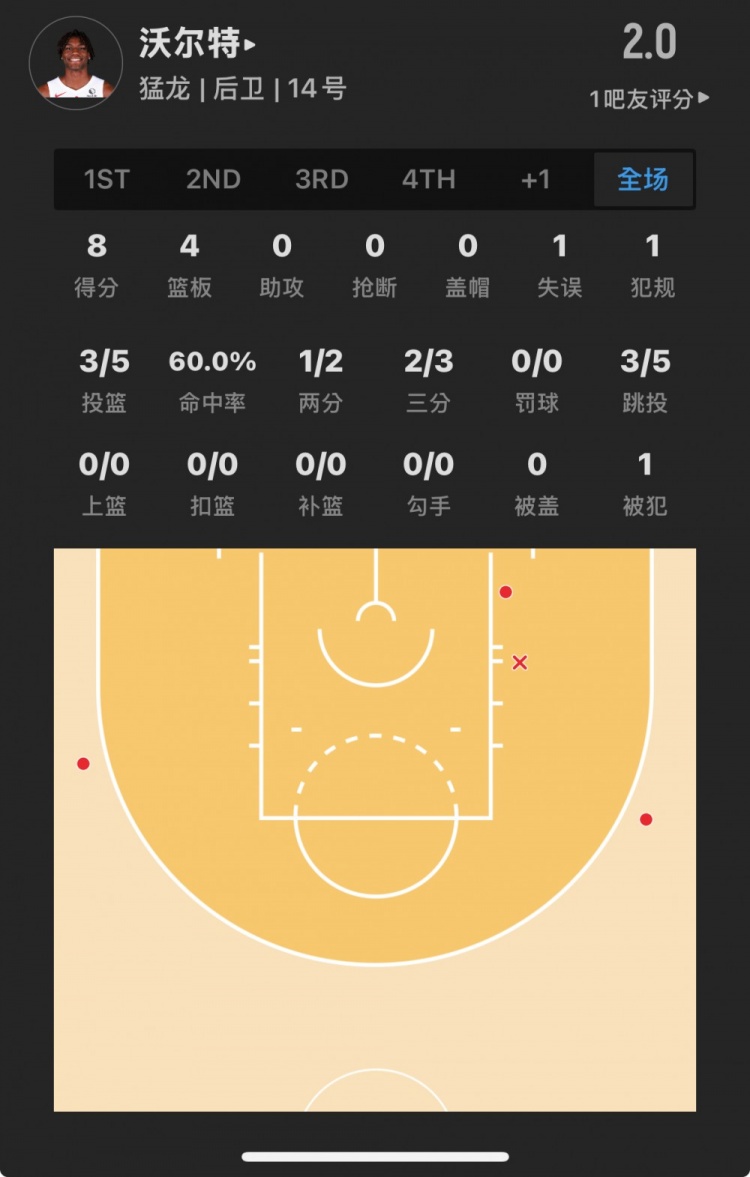 猛龍19號秀 賈科比-沃爾特 登場17.3分鐘