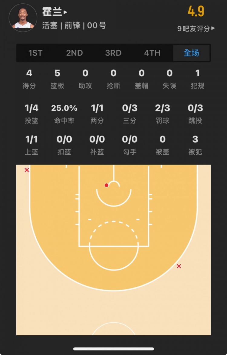 活塞5號秀 羅恩-霍蘭二世 登場19.6分鐘