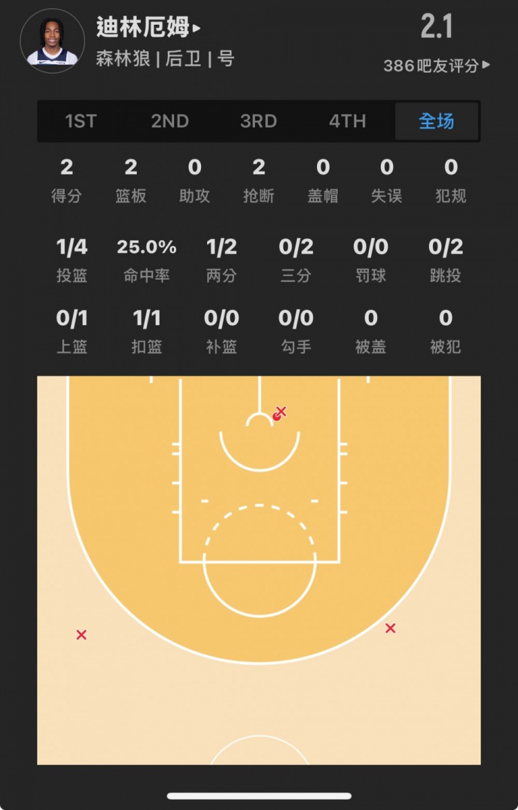 森林狼27號秀 小特倫斯-香農(nóng) 登場19.0分鐘