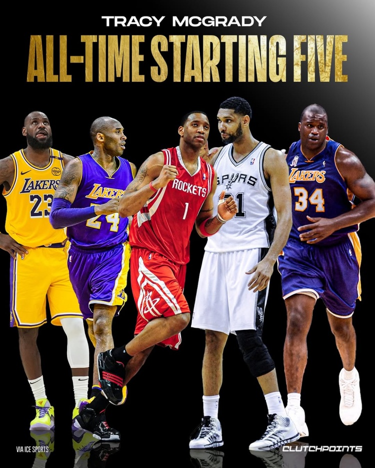 麥迪說(shuō)道:“我選擇勒布朗當(dāng)控衛(wèi),科比得分后衛(wèi)。我去打三號(hào)位,鄧肯四號(hào)位,奧尼爾五號(hào)位。沒(méi)有不尊重任何人,這就是我的五人組。“