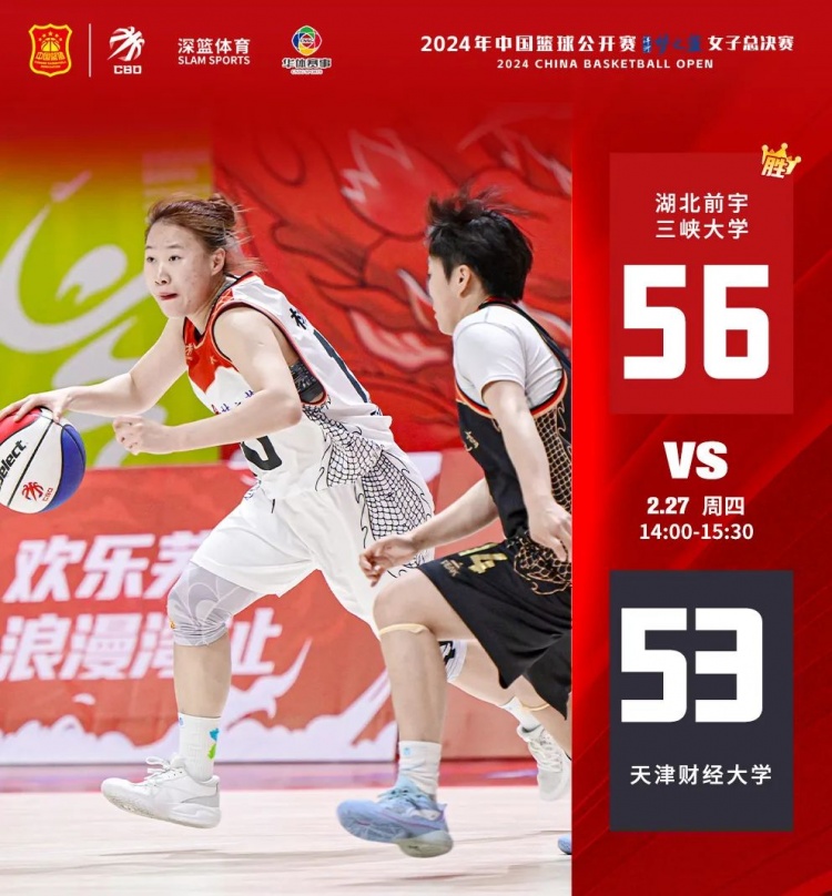 2月27日,2024年中國籃球公開賽洋河夢之藍(lán)女子總決賽進(jìn)入到第三個(gè)比賽日。在本輪中,湖北前宇三峽大學(xué)、云南隊(duì)、湖南師范大學(xué)取得勝利。