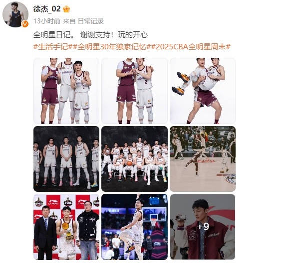 徐杰發(fā)博曬照回顧全明星,并寫道:“全明星日記。 謝謝支持!玩得開(kāi)心?!?/p>