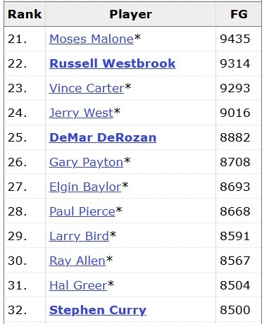 這樣一來,庫里生涯投籃命中數(shù)達到8505個,超越哈爾-格里爾升至歷史第31位!