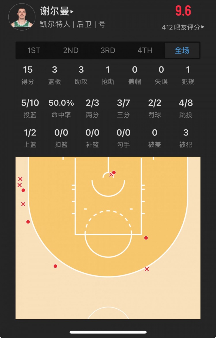 凱爾特人30號秀 貝勒-謝爾曼 登場29.8分鐘