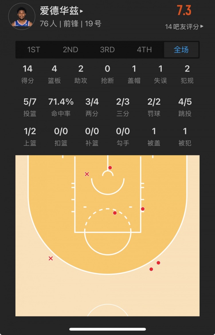 76人41號秀 阿德姆-博納 登場12.0分鐘