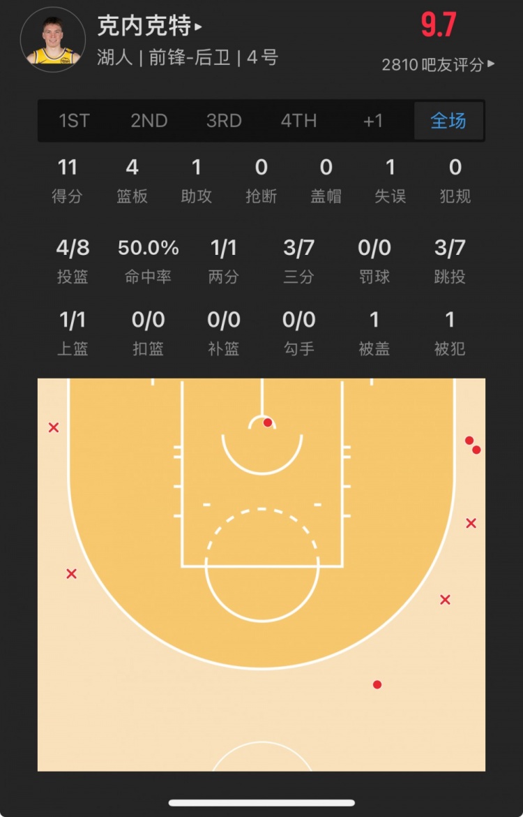 湖人17號秀 道爾頓-克內(nèi)克特 登場20.6分鐘