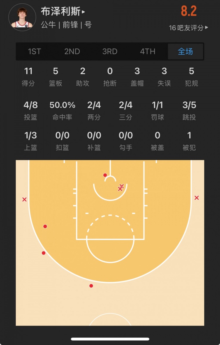 公牛11號秀 馬蒂斯-布澤利斯 登場29.3分鐘