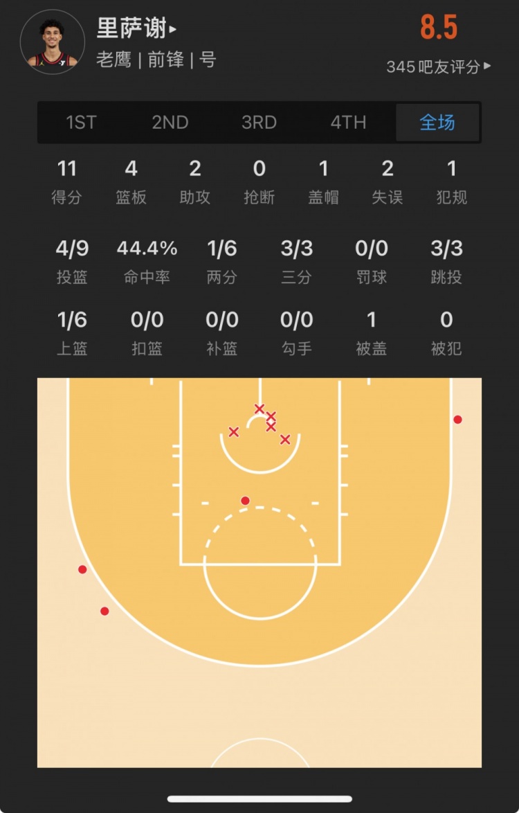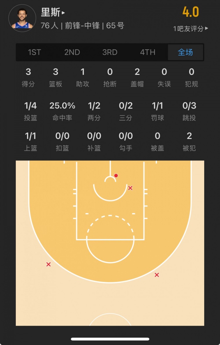 76人落選秀 亞歷克斯-里斯 登場9.7分鐘