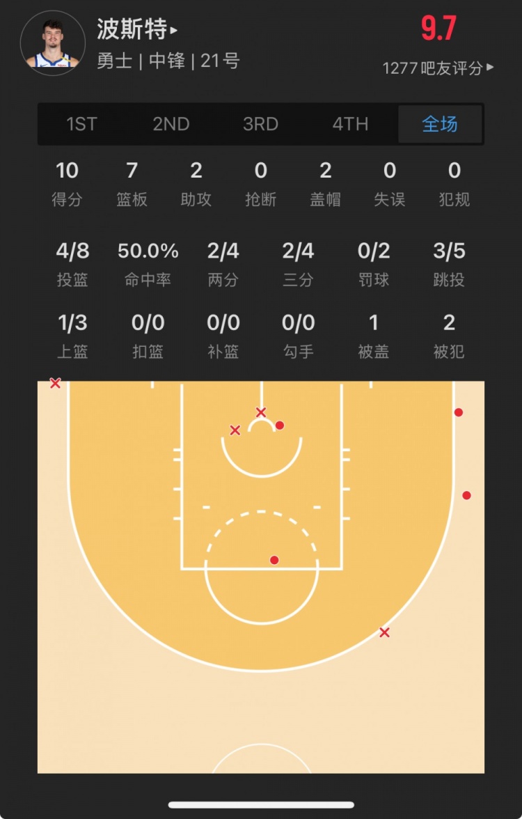 勇士52號秀 昆滕-波斯特 登場21.1分鐘