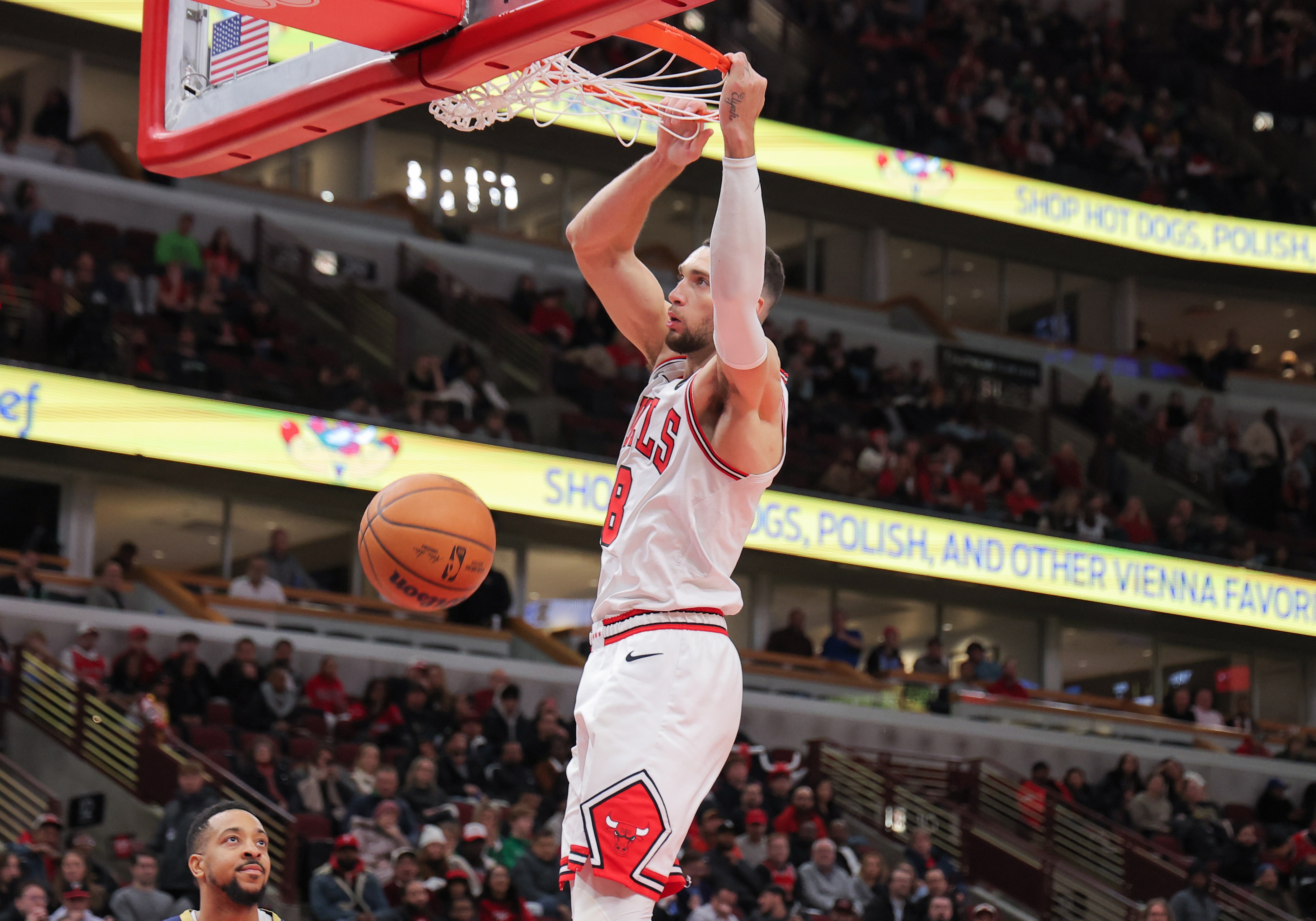 公牛在本賽季開始前送走了卡魯索和德羅贊,超市大開張。公牛重建已經(jīng)是公開的秘密,理想狀態(tài)下用目前剩下的最大牌球員拉文換多首輪自然是首選,但拉文并非攻防一體的明星球員,生涯至今只入選過兩次全明星,上季接受右腳手術(shù)賽季報(bào)銷,整季僅出戰(zhàn)了25場比賽,能力、健康、大合同都制約了拉文的交易前景和難度。