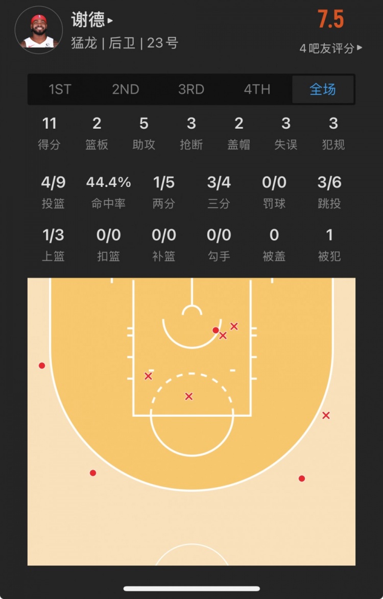 猛龍45號秀 賈馬爾-謝德 登場26.6分鐘