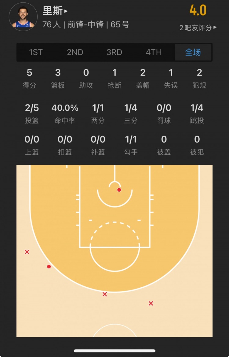 76人落選秀 亞歷克斯-里斯 登場18.5分鐘