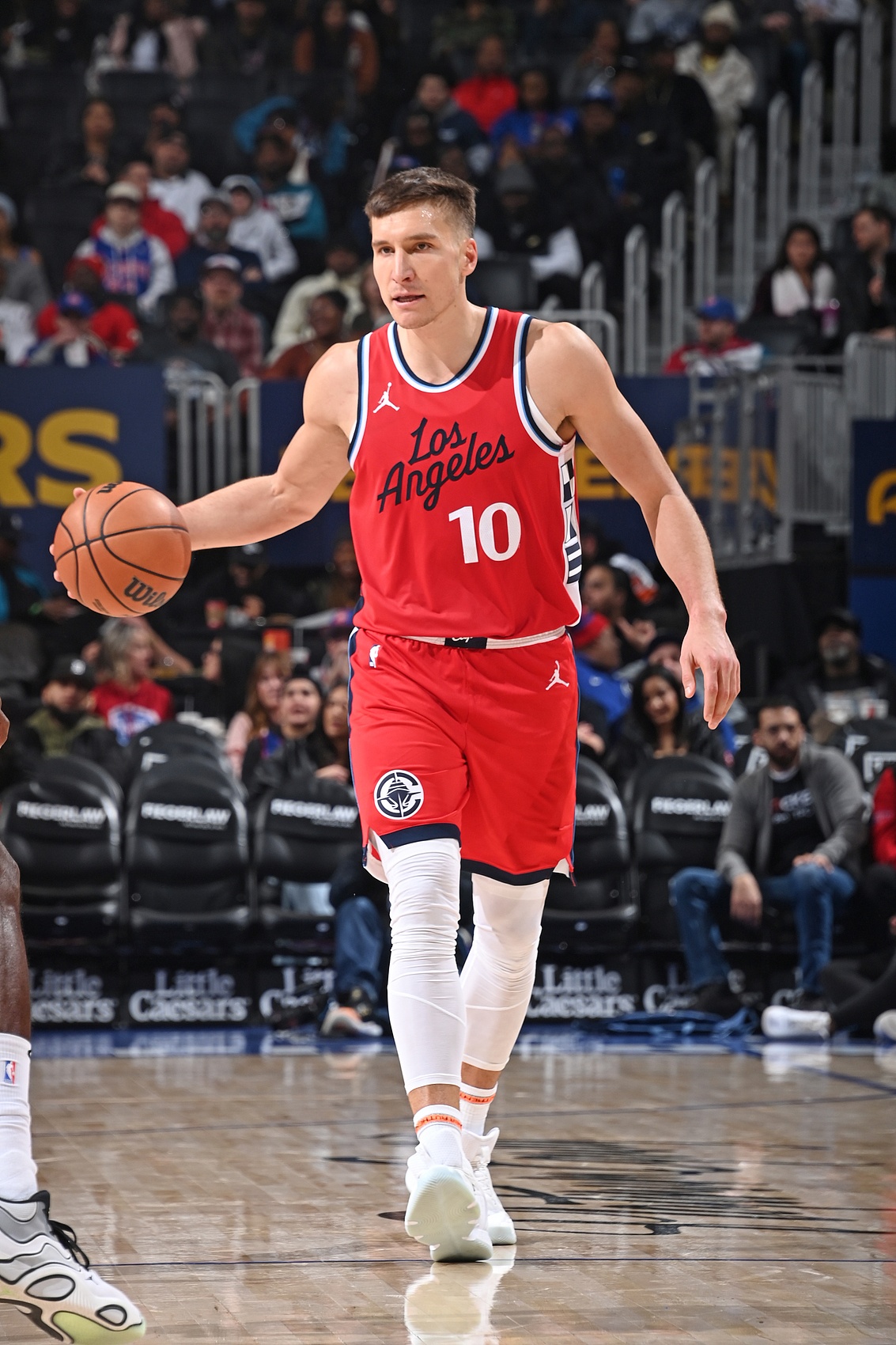 快船末節(jié)擺卡子哥+瓊斯+巴圖姆+西蒙斯+博格達諾維奇的四鋒線陣容在場,除了博格達諾維奇其他四個點的防守拉滿,卡子哥和博格達諾維奇強勢硬解,快船一度建立起12分領先優(yōu)勢。