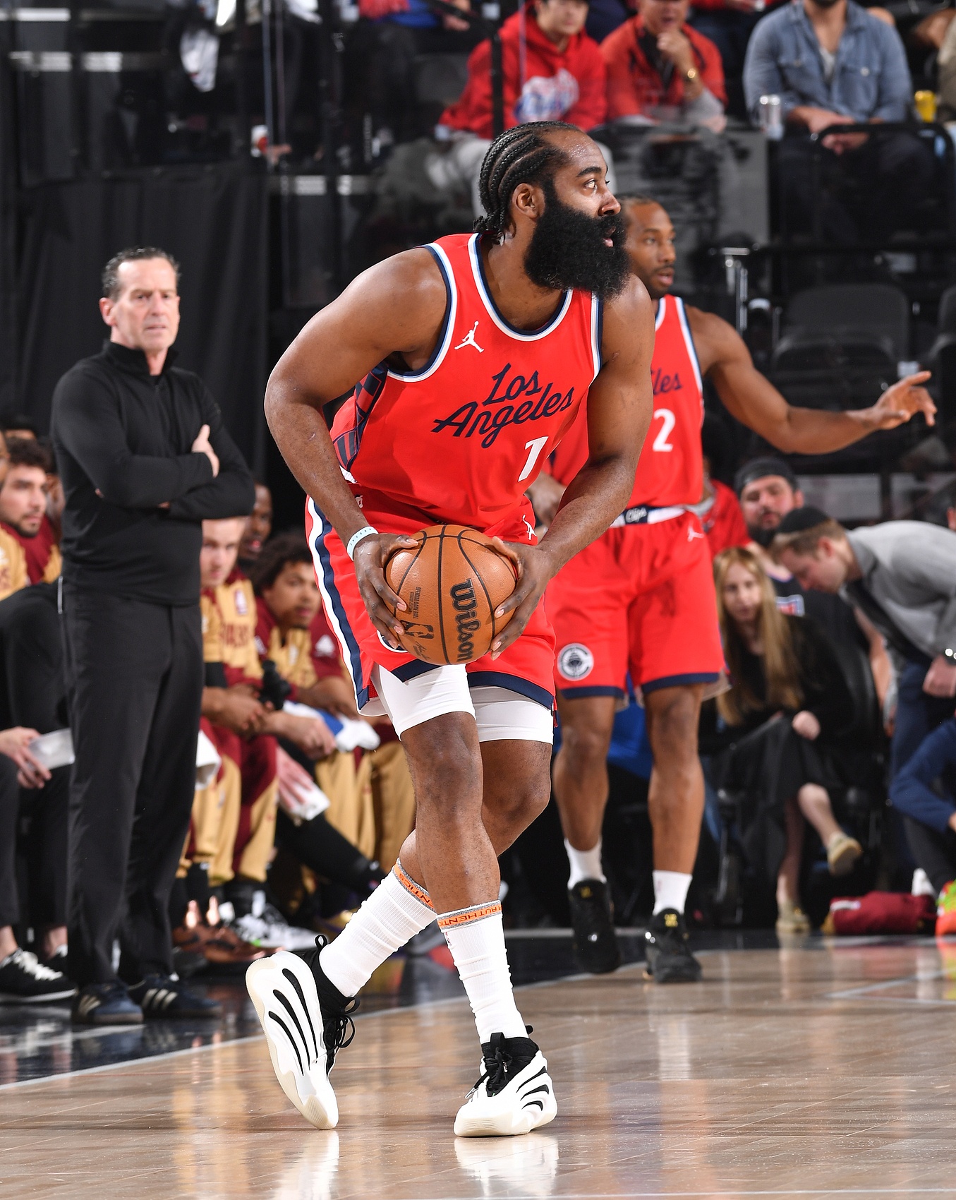 其一,后場防守弱環(huán)過多,加蘭、米切爾、大傷后的斯特魯斯、杰羅姆、梅里爾五個后場防守都不好,這一戰(zhàn)被哈登、卡子哥、鮑威爾、博格達諾維奇點菜打爛了。這也是騎士在季中交易引進亨特的意義,亨特是203公分的大體型側翼,防守上至少能抵抗一下,騎士后場普遍能突能投能處理球,但防守確實辣眼睛,季后賽遇上強力持球手必然被點菜。