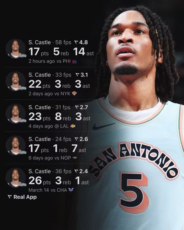此役,馬刺新秀卡斯?fàn)柍鰬?zhàn)35分鐘,14中6得到17分5板14助3斷。