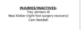 值得注意的是,除了受傷的克萊伯,雷迪什和雙向合同球員杰米森沒有進入激活名單。