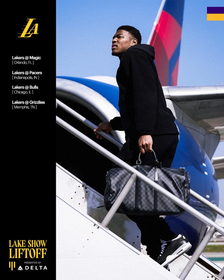 3月25日訊 湖人官推曬出詹姆斯、八村塁和里夫斯登機(jī)照,并寫道:客場(chǎng)之旅。