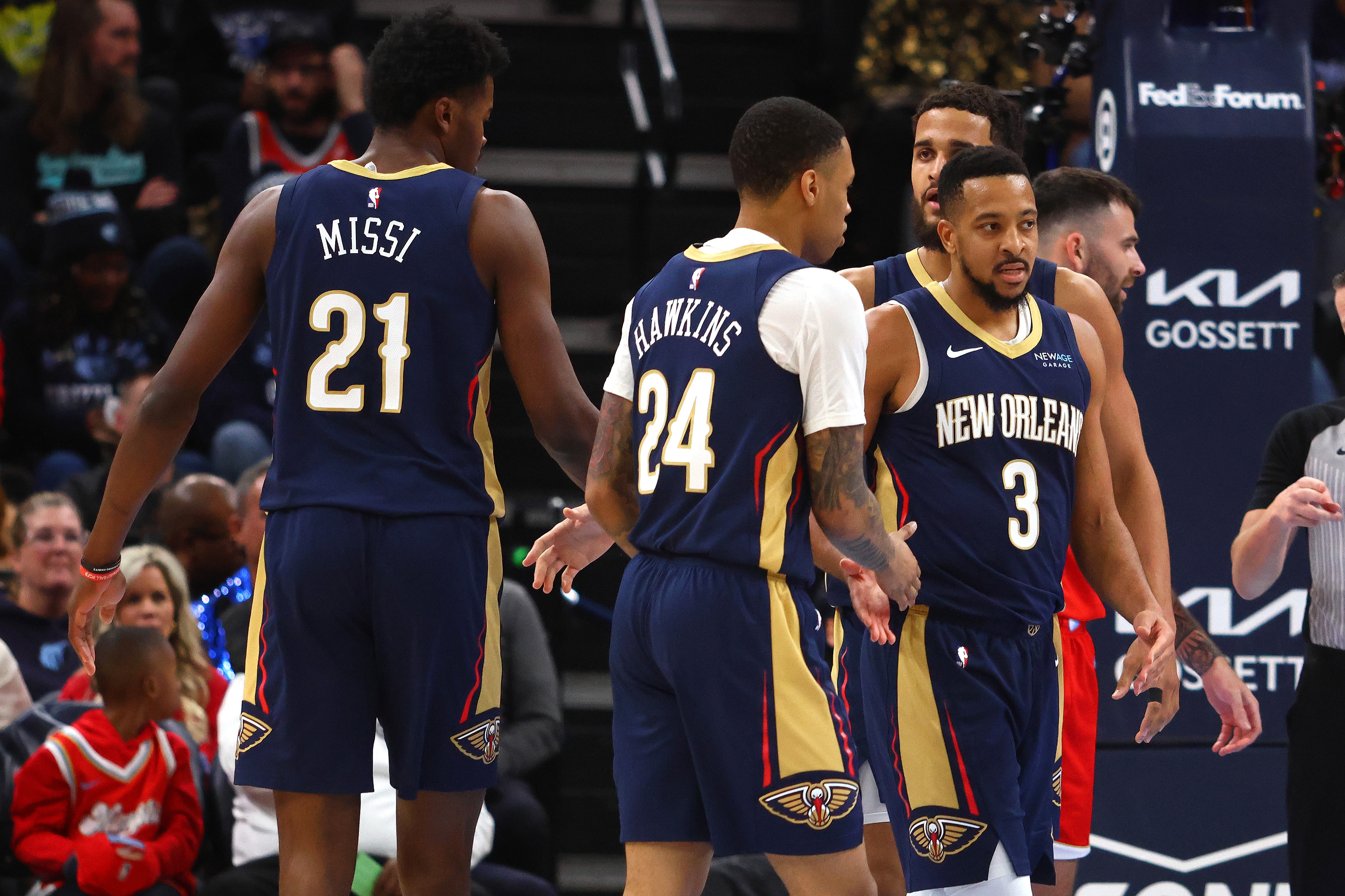 新奧爾良——在伊夫-米西職業(yè)生涯的第二場比賽后,他的隊(duì)友們興奮不已,充滿活力。