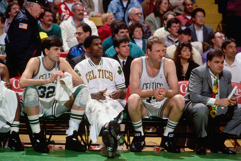 [1]譯注:1980年6月,奧爾巴赫將當(dāng)年的狀元簽和第13順位選秀權(quán)交易至勇士,換來探花簽和四年級中鋒羅伯特-帕里什(生涯9次全明星),然后用探花簽選中了凱文-麥克海爾(生涯7次全明星),與拉里-伯德組成了強(qiáng)大的陣容并三奪總冠軍。而勇士隊用狀元簽選中了喬伊-巴里-卡羅爾(生涯1次全明星),在第13順位選中了里基-布朗(生涯無榮譽(yù))。