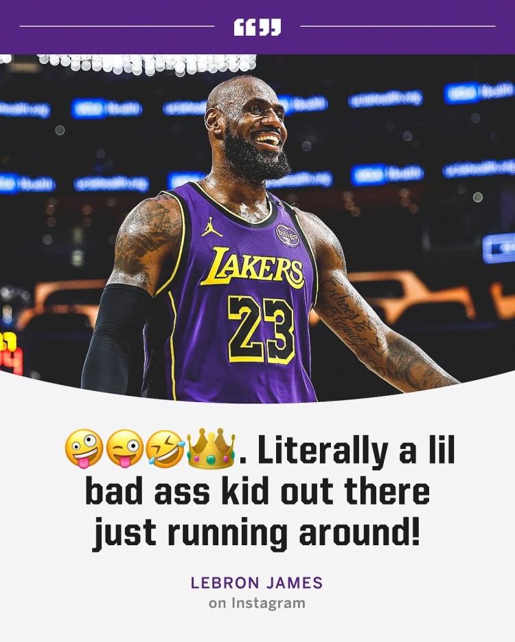 今天,詹姆斯在INS分享了昨天比賽的圖片,并寫道:“????????????????。真正的,一個(gè)小壞蛋在場(chǎng)上跑來(lái)跑去?!?/p>
