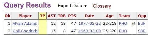 據(jù)統(tǒng)計,太陽隊史僅有3名球員打出過至少47分6板11助的數(shù)據(jù),前兩人分別是阿爾萬-亞當斯和蓋爾-古德里奇。