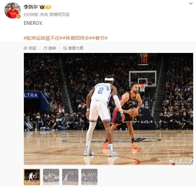 2月1日訊 今天,勇士球員李凱爾更新了個(gè)人微博。