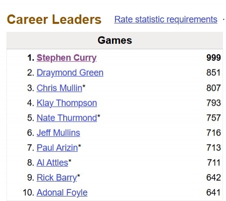 這樣一來(lái)庫(kù)里解鎖常規(guī)賽生涯第1000場(chǎng)比賽,勇士隊(duì)史首人!