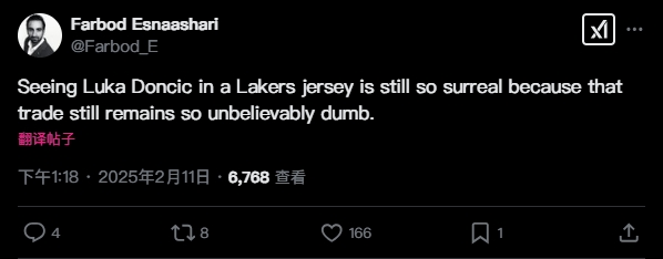 賽后,快船隊記Farbod Esnaashari發(fā)推寫道:“看到盧卡-東契奇身穿湖人球衣依然讓人感覺很不真實,因為那筆交易是那么不可理喻!愚蠢?!?/span>