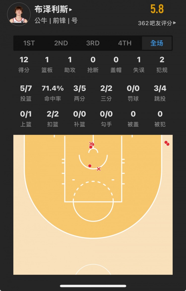 公牛11號秀 馬蒂斯-布澤利斯 登場19.1分鐘