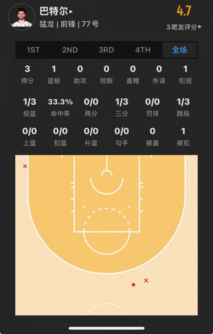 猛龍落選秀 賈米森-巴特爾 登場9.3分鐘