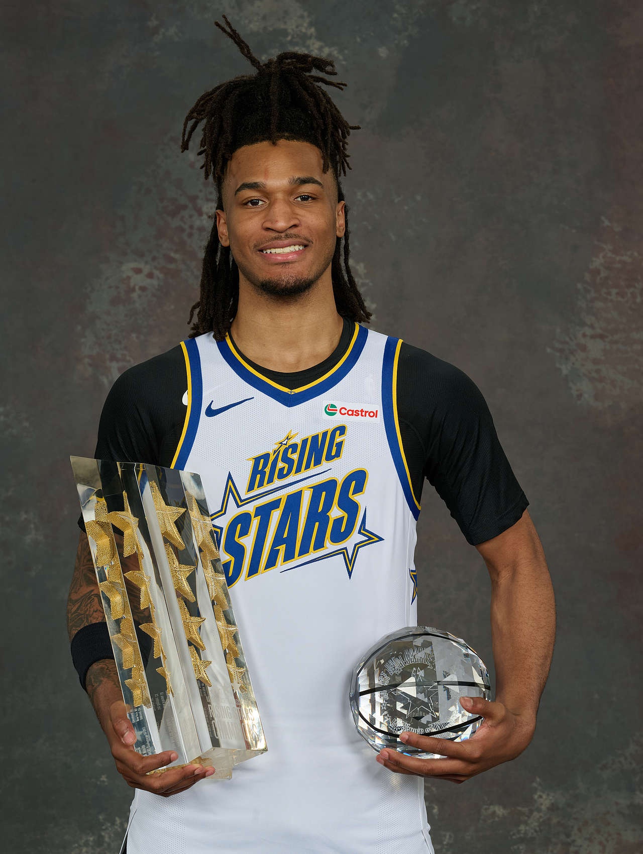 卡斯?fàn)栴I(lǐng)取新秀賽MVP獎杯