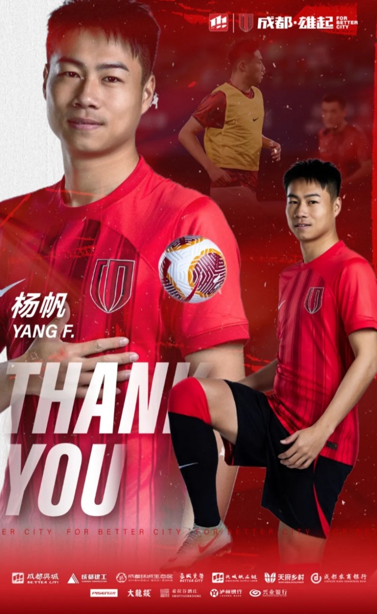 成都蓉城官方:劉濤、耿曉峰、楊一鳴、帕拉西奧斯等8位球員離隊