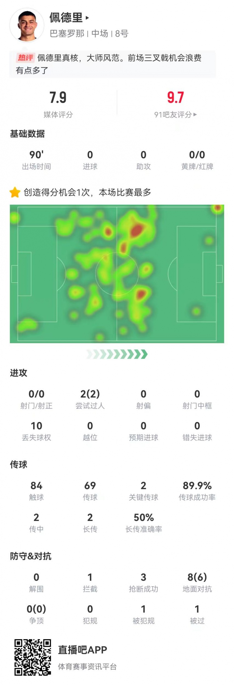 2月18日訊 巴薩在本輪西甲1-0險勝巴列卡諾,佩德里當選全場最佳球員,本場數(shù)據(jù)如下: