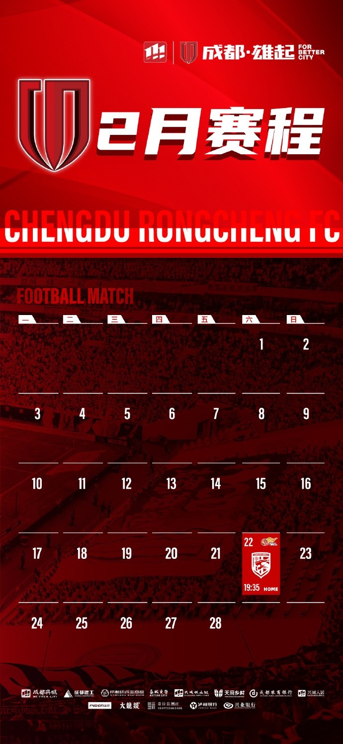 新賽季開啟!成都蓉城2月賽程來啦!