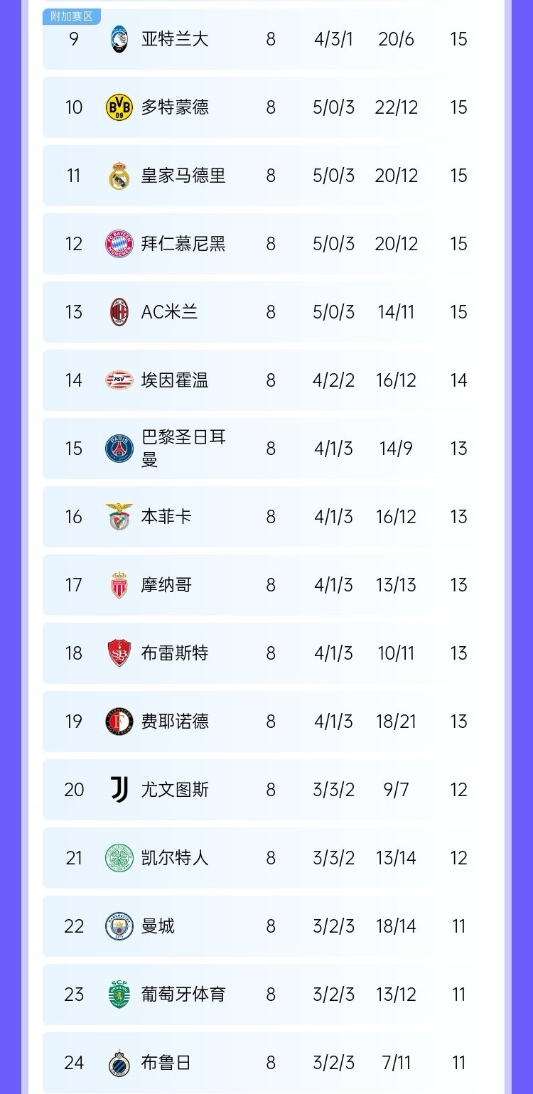 亞特蘭大本賽季歐冠聯(lián)賽階段4勝3平僅1負(fù),他們2-3輸給過皇馬。雖然沒能直接晉級(jí),但是“真藍(lán)黑”排名附加區(qū)第1,對(duì)陣附加區(qū)倒數(shù)第1的布魯日,按理說應(yīng)該沒有問題。但是歐冠版“黑八奇跡”上演,亞特蘭大遭雙殺出局。