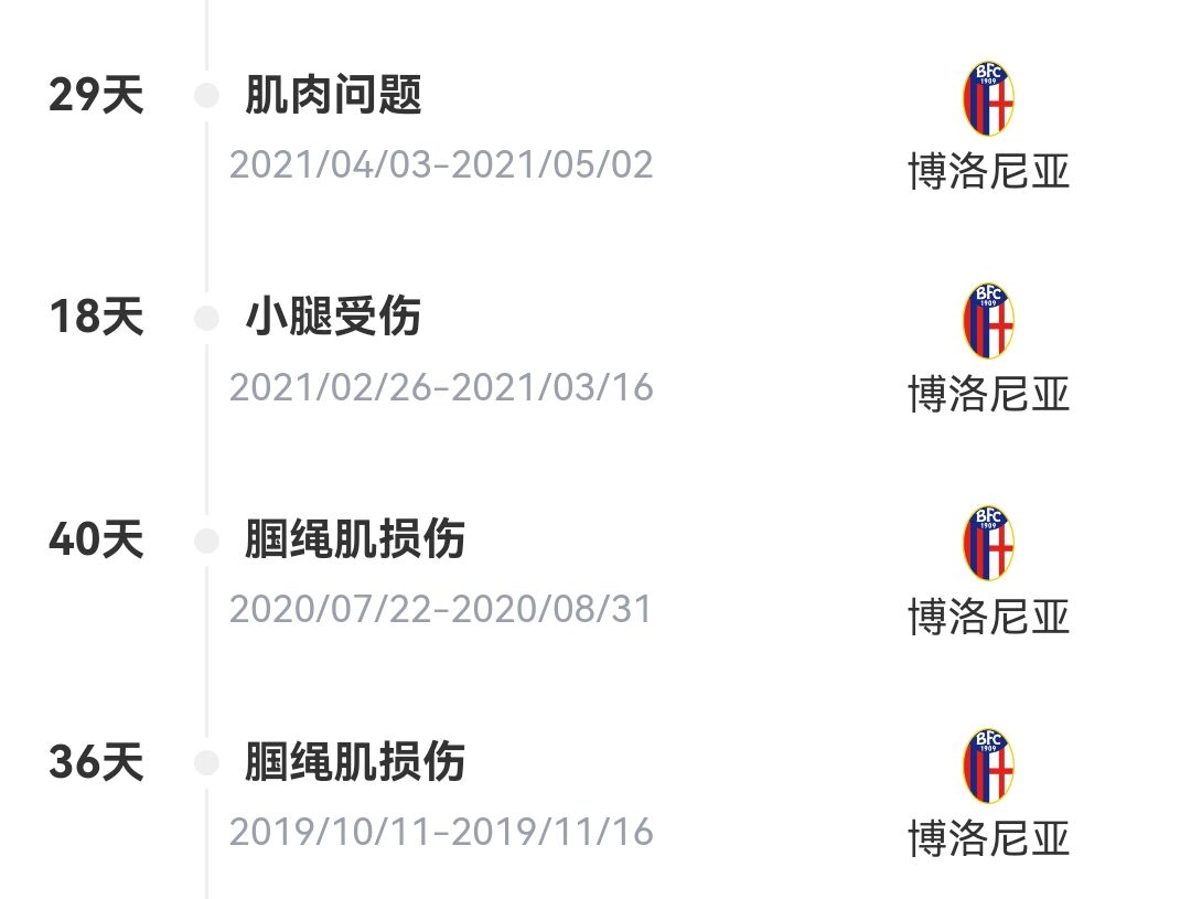 實(shí)際上在富安健洋效力于博洛尼亞的時(shí)候,就顯現(xiàn)出了玻璃人的屬性,他多次因?yàn)榧∪鈧∪毕荣悺?/span>