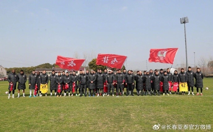 19日10時,上海天氣晴好,亞泰將士抵達訓練場。訓練前,全隊舉行了新賽季出征儀式。俱樂部總經(jīng)理曾皎峰帶著省市體育局的囑托,專程從長春趕到上海看望亞泰將士。在出征儀式上,曾皎峰受省市體育局委托,向全體將士授吉林省旗、長春市旗、亞泰隊旗,主帥謝暉、領隊常琳、隊長譚龍分別接過吉林省、長春市、長春亞泰三面大旗?!霸趧倓偨Y束的在哈爾濱第九屆亞洲冬季運動會上,吉林省冰雪健兒敢打敢拼、不畏困難,獲得了9金5銀6銅的優(yōu)異成績,為祖國和家鄉(xiāng)贏得了榮譽,進一步激發(fā)了吉林省體育系統(tǒng)奮勇爭先的熱情。作為足球運動員,我希望長春亞泰全體將士們,牢記為長春戰(zhàn)斗的使命,共同努力,換來一年的好成績?!痹ǚ逭f。