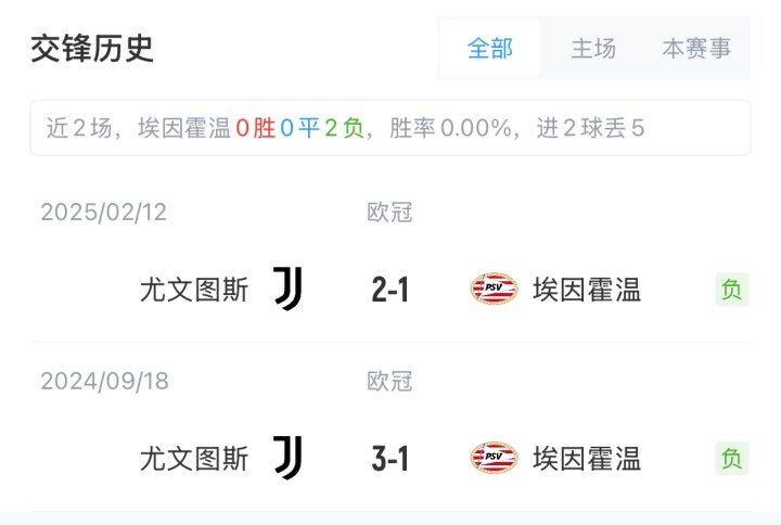 02月20日訊 在剛剛結(jié)束的歐冠淘汰賽附加賽中,尤文兩回合總比分3-4不敵埃因霍溫慘遭淘汰,巧合的是兩隊在之前的聯(lián)賽階段就有過交手,當(dāng)時尤文曾3-1輕取對手,附加賽的首回合尤文也以2-1取勝搶占先機(jī),但卻在最關(guān)鍵的第二回合敗北。