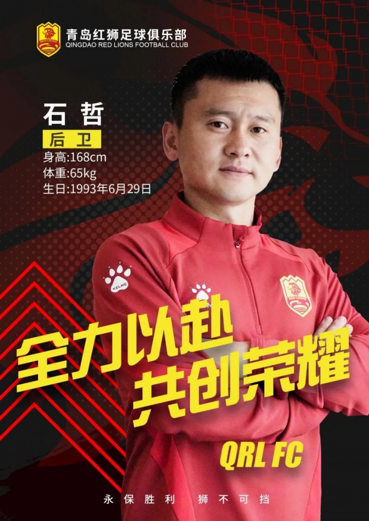 石哲,出生于1993年6月29日,身高168cm,體重65kg,他跑動積極,拼搶兇狠,腳下細膩,戰(zhàn)術執(zhí)行力強,可勝任場上多個位置。2019賽季石哲以絕對主力身份為青島隊在中甲聯(lián)賽中奪冠并沖超成功立下汗馬功勞;2023賽季石哲轉會云南玉昆,幫助球隊沖甲成功;2024賽季助云南玉昆獲得中甲聯(lián)賽冠軍并成功沖超。期待他在加盟球隊后迅速融入技戰(zhàn)術體系,用經(jīng)驗和斗志為紅獅貢獻力量!