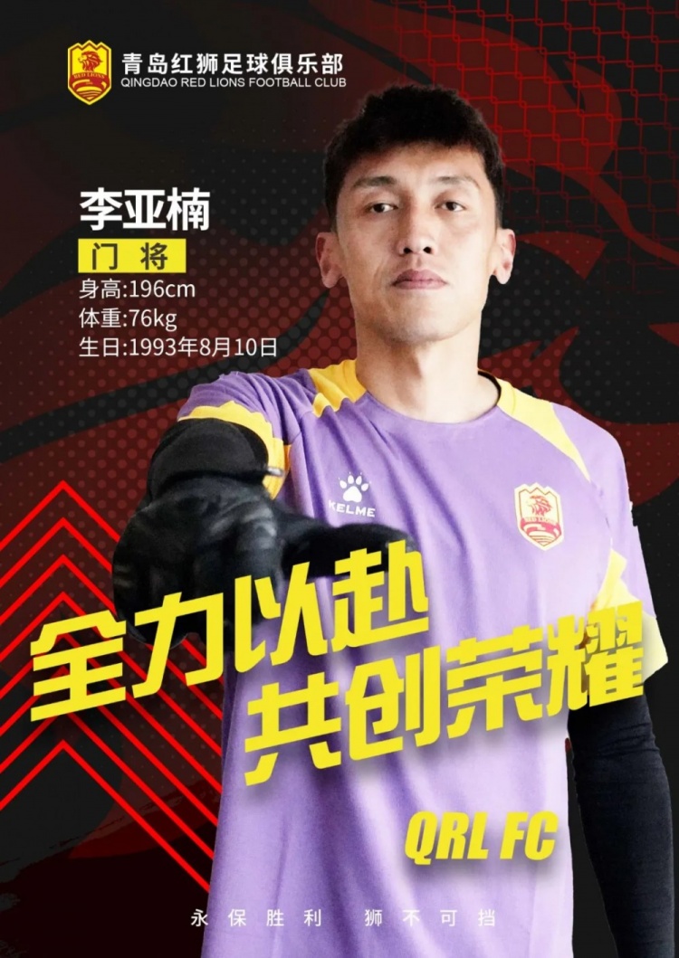 李亞楠,出生于1993年8月10日,身高196cm,體重76kg,腳下技術出色,高空球控制面積大,擅長一對一正面封堵。作為門將,他沉著穩(wěn)定,2021-2023年加盟蘇州東吳足球俱樂部期間,中甲出場25場,曾摘得官方頒發(fā)的南京賽區(qū)聯(lián)賽第18輪最佳球員榮譽。相信他會以更好的狀態(tài)投入到青島紅獅的新征程!