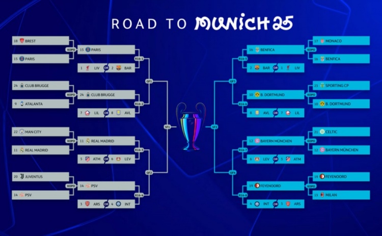 2024/25賽季歐冠16強(qiáng)淘汰賽對(duì)陣抽簽將于北京時(shí)間今天晚上19:00進(jìn)行,抽簽地點(diǎn)位于瑞士尼翁。