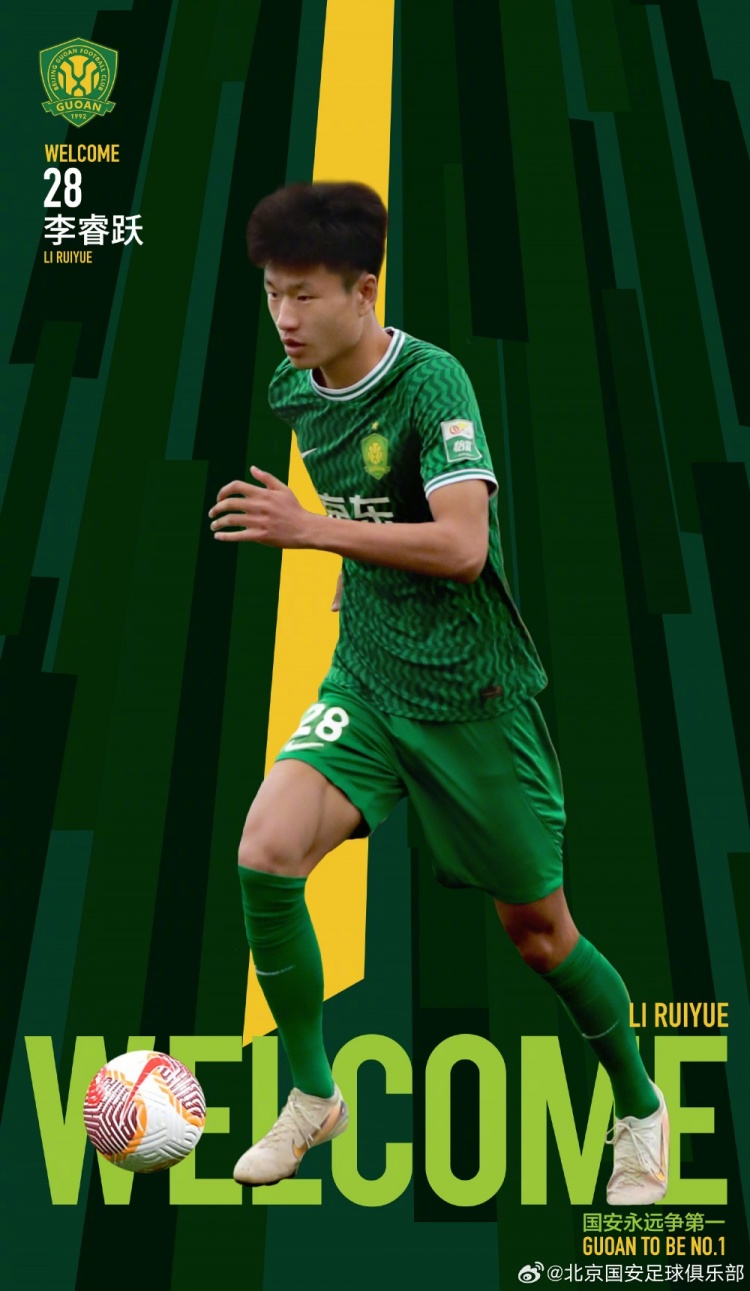 李睿躍正式加盟北京國安足球俱樂部,他將身披28號球衣,代表北京國安出戰(zhàn)本賽季中超聯賽、亞冠聯賽、足協杯等各項賽事。 李睿躍出生于2006年5月15日,身高192cm,體重79kg,司職中場。