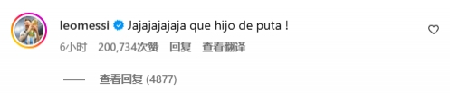 梅西在評(píng)論區(qū)評(píng)論道:“哈哈哈哈,你這狗娘養(yǎng)的?!?/p>
